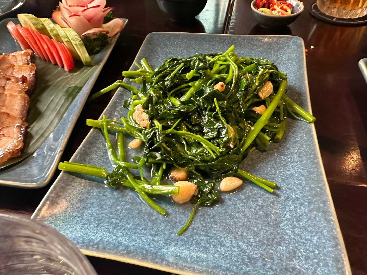 점심에 베트남 음식을 먹었기 때문에 저녁은 한국식으로 먹었다. (외국이라고 해서 풀 타임으로 그나라 음식을 즐기는 것보다. 한식과 현지음식을 적절한 비율로 조정해서 음미하는 것이 훨씬 좋은 것 같다.) 육대장 이라고 한국에서도 인기가 많은 육개장 프랜차이즈였는데 , 육개장 중에서도 대파가 들어가서 육대장이라고 했다. 육대장 칼국수도 있었고 그냥 밥과 먹는 육대장도 있었는데 , 국물이 너무 맛있었다. 나는 육대장 칼국수를 시켰고 다같이 먹을 수 있도록 보쌈도 함께 시켰다. 한국에서 먹을 수 있는 익숙한 맛이긴 했지만 여행와서 기분이 좋아서 그럤는지는 몰라도 유난히 더 맛있었다.