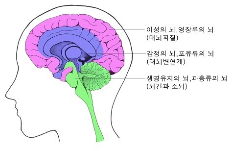 (3) 인간의 뇌 : 파충류 + 포유류 + 이성적 ,생각하는 능력임